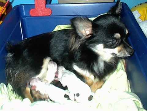 Hohlkreuz rumläuft *grins* Nun, unser D-Wurf kam problemlos auf die Welt....wunderschöne Welpen, denen sie auch ihr liebes Wesen vererbt hat! Tara hat sie abends immer noch gestillt - bis zur 12. Woche ! Eine wirklich unermüdliche Mama im Fulltimejob! Wir hoffen noch auf viele schöne und gesunde Welpen von ihr! |