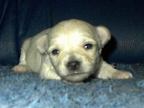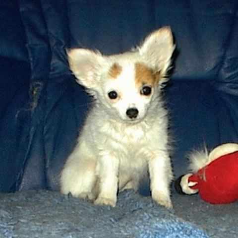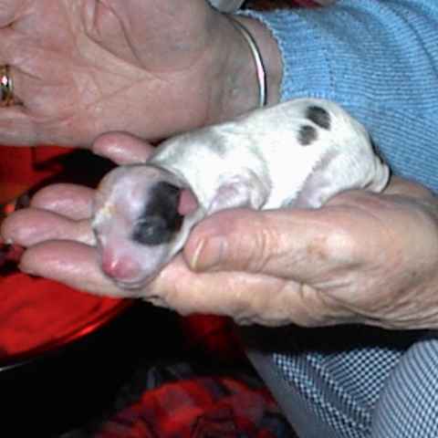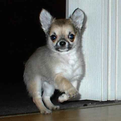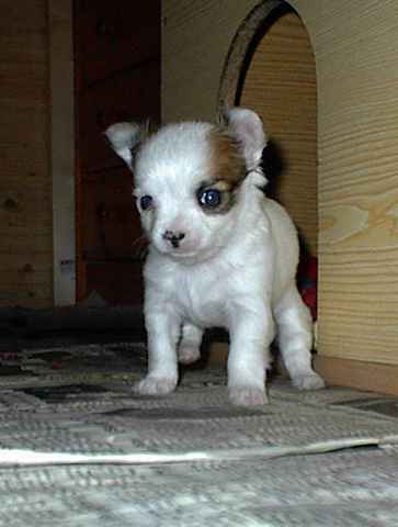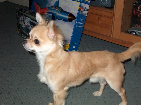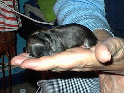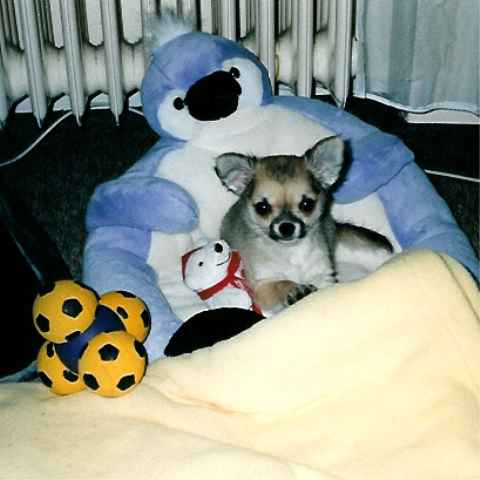 Bei Dipsy Dynamite hatten wir zunächst noch die Hoffnung, dass sie zur Zucht geeignet sein könnte. Aber leider hat sie es nie geschafft, über das Gewicht von 1800 g hinaus zu kommen. Also lebt sie bei uns als Maskottchen und "Welpen-Animateur" |