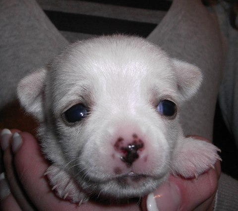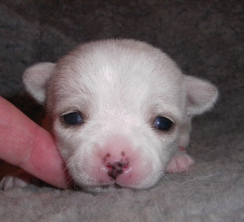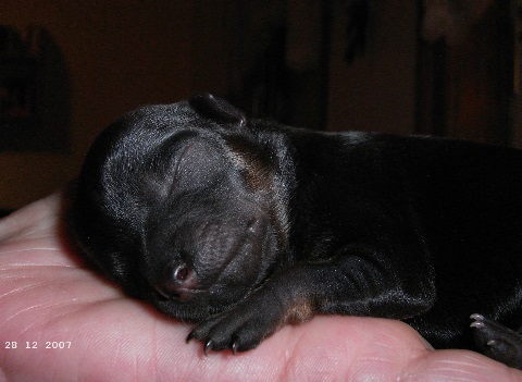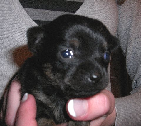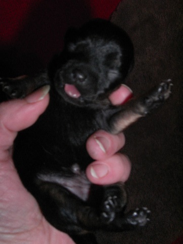 | Die Welpen sind jetzt 2 Wochen alt und haben sich prächtig entwickelt. Alle haben super an Gewicht zugenommen und mit 2 Wochen und 2 Tagen endgültig die Augen geöffnet. Der eine oder andere hat sogar schon einen kleinen Ausflug gemacht, obwohl er noch nicht gucken konnte, nur laufen. Aber wenn die Mama ca. 1 m entfernt war, gabs dann auch schnell Gebrüll. |