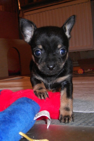 In den vergangenen 2 Wochen ist viel passiert. Der erste Besuch beim Tierarzt, wo geimpft und gechipt wurde *AUA* - die Mädels waren unheimlich tapfer und die Jungs.....naja....."echte" Männer eben *ggg*! Die Ohren fallen nur noch ein bisschen, wenn die Bande müde ist, sonst stehen sie schon schön hoch. Sie spielen jetzt schon mit einzelnen Mädels vom Rudel - besonders die "großen" Schwestern Dipsy und Emmylou-Sou sind tolle Tobe-Partner! |
