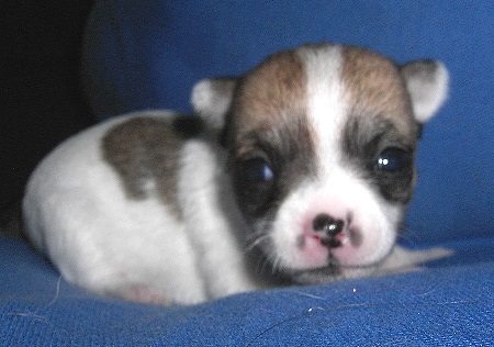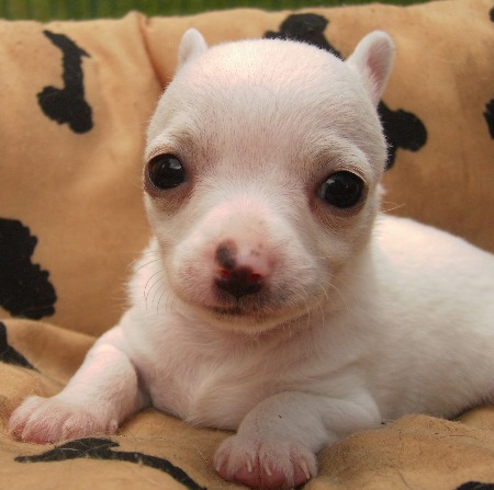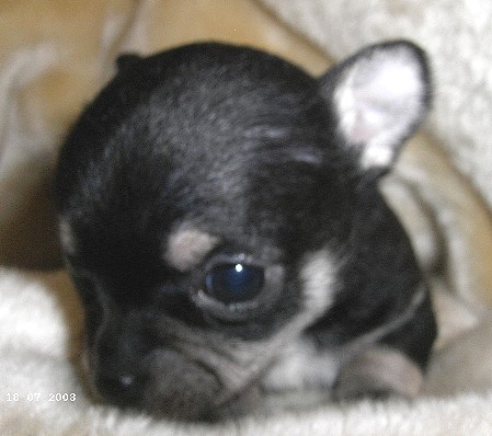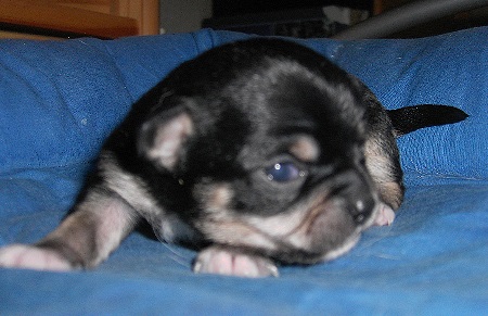 | Die Welpen hatten zwar bei der Geburt absolute "Standartgewichte", aber jetzt mit 2 Wochen haben alle extrem zugenommen. Sie sind schon richtig "groß" geworden. Der eine oder andere hat sich heute, am 2wöchigen Geburtstag, endlich entschlossen, mal ein Äuglein in die Welt zu werfen. Jinx war, wie schon bei der Geburt, die erste, die mich heute morgen gleich mit 2 offenen Augen anschaute. Die anderen "arbeiten" noch dran! |