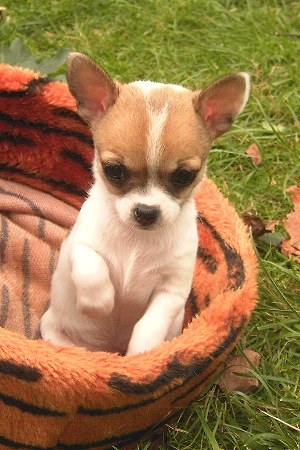 | Außer schlafen und saugen tun die Welpen ja noch nix. Aber pünktlich mit 3 Wochen haben wenigstens Jordan und später Jinx schon mal einen Ausflug gemacht und waren außerhalb des Korbes. Das war aber für Mama Emmylou-Sou noch zu früh und so hat sie mich schnell zur Hilfe geholt, indem sie kam und mich anpiepste. Offenbar findet sie die kleinen Welpen noch zu jung für die "Nestflucht". In den nächsten Tagen wird sie sich dann wohl dran gewöhnen müssen. |