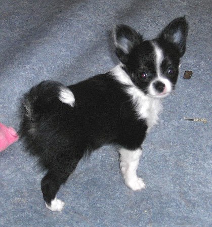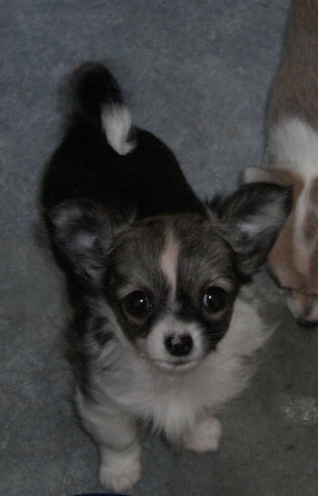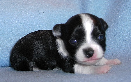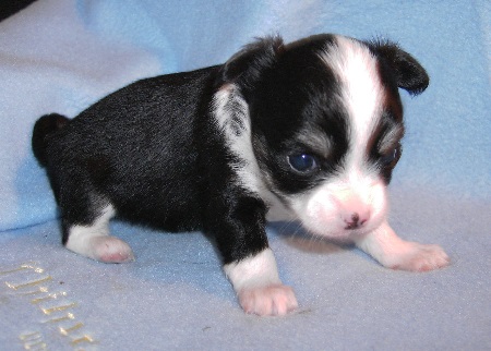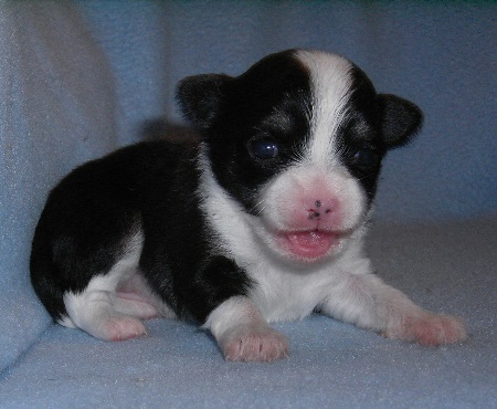 | Langsam, ganz langsam kommt ein bisschen Bewegung in die L-chens! Der eine oder andere macht schon mal einen kleinen Ausflug und verlässt das Körbchen - aber noch niemals für lange. Die erste Wurmkur wurde tapfer hinunter gewürgt und auch die erste Pediküre musste das kleine Volk über sich ergehen lassen. Übrigens -falls man es auf den Fotos nicht sieht- ALLE haben eine weiße Rutenspitze und 4 weiße Pfötchen. |