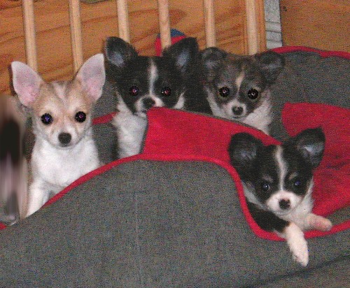 | Die L-chens sind schon sehr lebhafte Racker. Alle klettern gern und viel und toben mit Mama Emmylou-Sou. In der nächsten Woche wird die erste Impfung anstehen. |