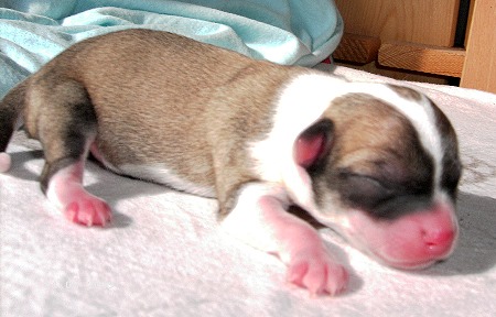 Am 13.08.2009 erblickten 4 Welpen - 1 Bub und 3 Mädel - das Licht der Welt. Für die Zucht ist dieser Wurf ein ganz besonderes Ereignis, denn es ist das erste Mal, dass beide Elternteile aus der eigenen Nachzucht sind ! Wie die Geburt verlief und die ersten Fotos von der Geburt sehen Sie, wenn Sie auf den Button klicken : |